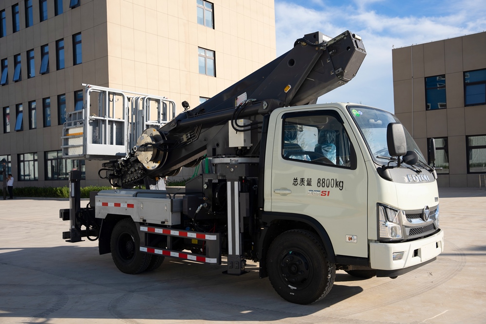 3、整車輕量化設計,臂架和支腿采用高強度鋼焊接,外形美觀,受力大,強度高。